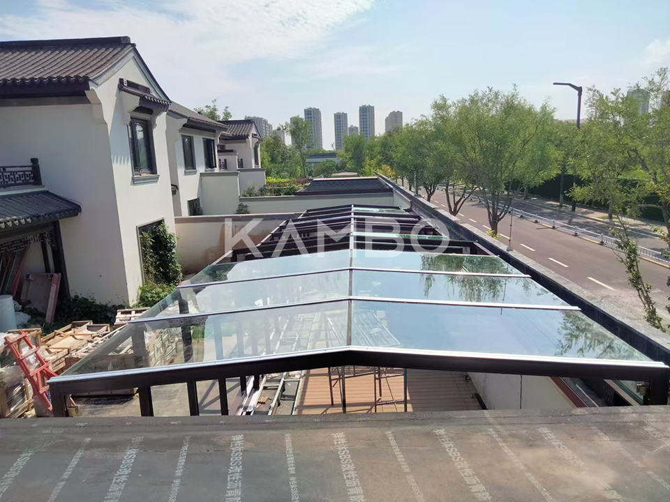 Shandong Dezhou customers flexibly integrate intelligent mobile sunrooms, fixed sunrooms, and skylights into an integrated system based on the actual situation of the villa courtyard. The intelligent mobile sunroom adopts a modular assembly type stacking structure, with sliding track opening and closing, intelligent control opening and closing, flexible and versatile, fully utilizing the courtyard space to create a multifunctional leisure living space, enjoying high-quality life.